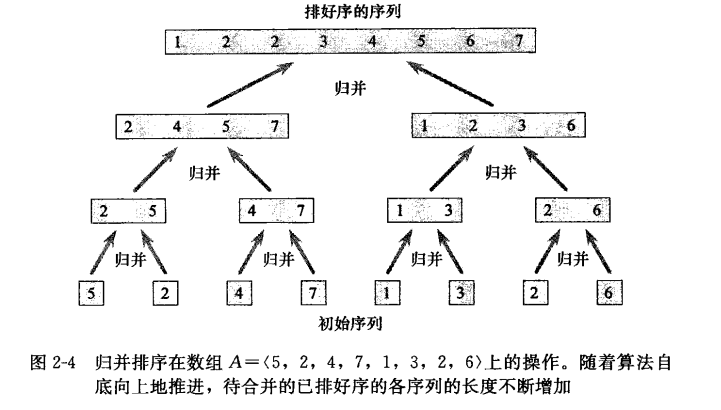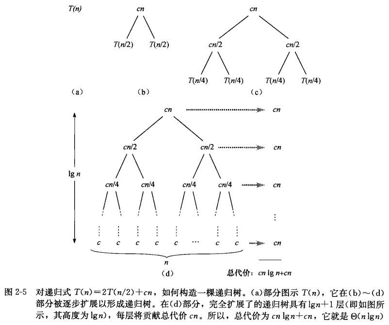 算法本身的递归式 -> 最坏运行时间T(n)的递归式 -> 数学分析得到T(n)=O(nlgn)