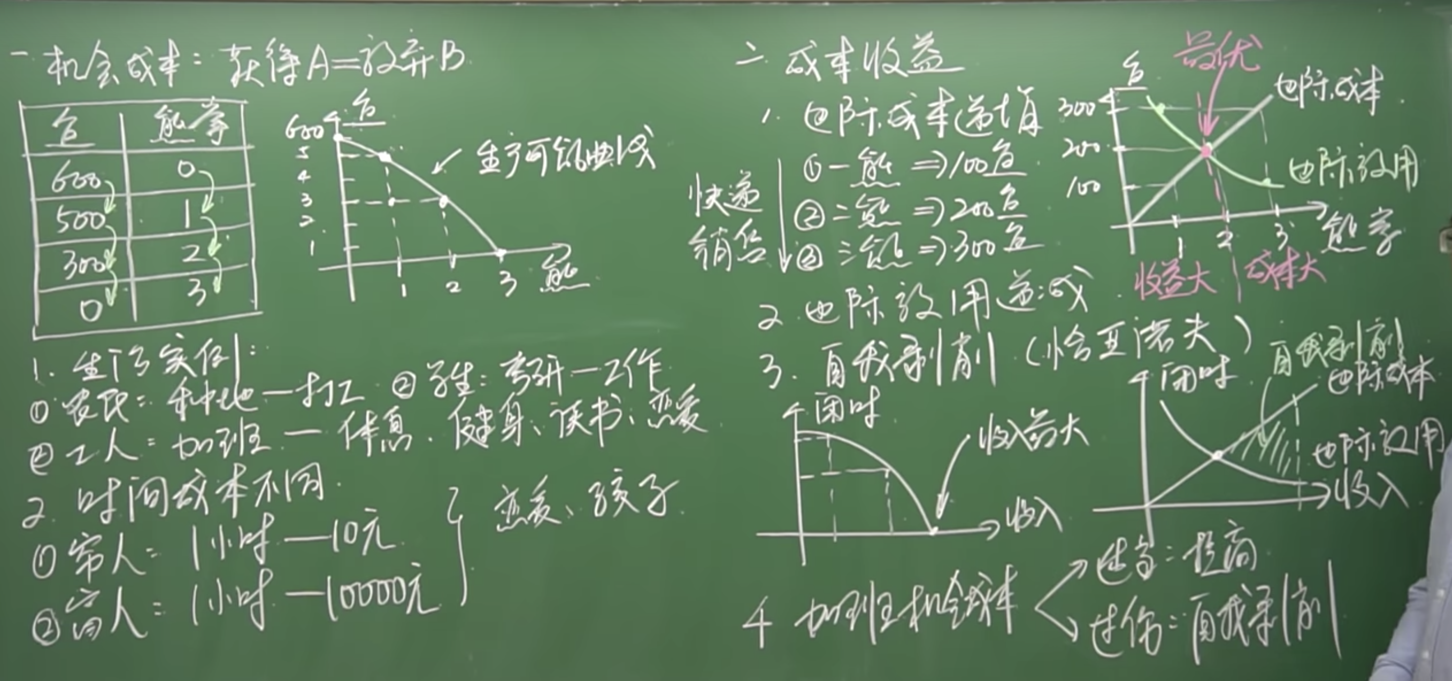 效用高、成本低,收益大。 效用低,成本高,成本大。 边际成本==边际效用时,是最好的做法。 要小心自我剥削陷阱:边际成本远远大于边际收入。