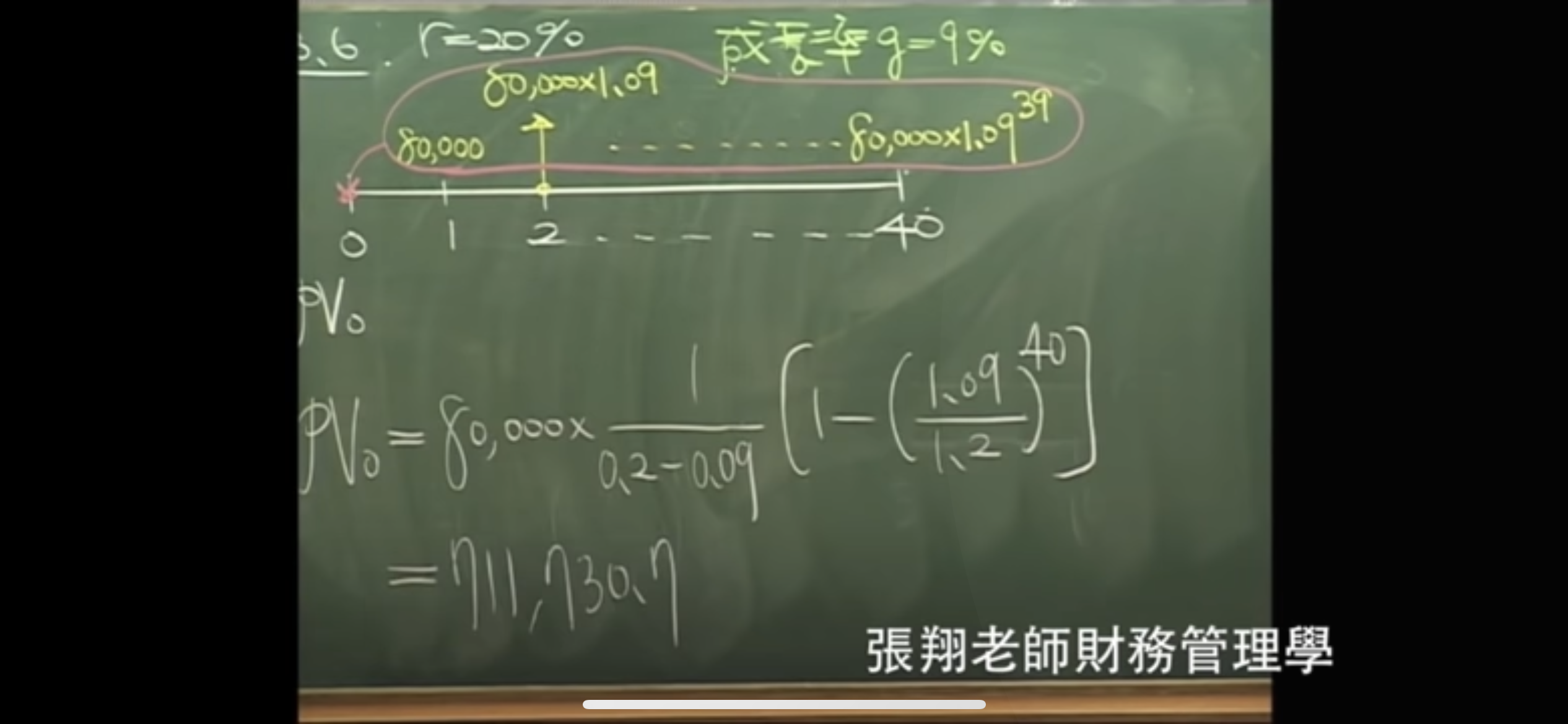 cash flow发生在每一期的期末。 永远不还本金,一直产生cash flow。 永续没有终值,因为一直存在。 只会计算现值。